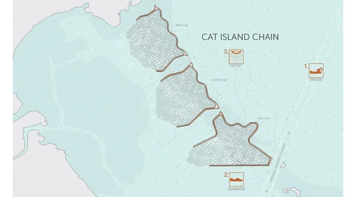 The Cat Island Chain Beneficial Project is an ongoing revitalization project located north of the Green Bay harbor and is the current location of sediment deposition from the shipping channel dredging process. The original island was destroyed by wave erosion in 1975 and completely submerged in 2012. The revitalization is to restore the island and provide mainland protection from wave erosion. The overall goal of the proposal is to introduce a system which will establish a more successful and habitable ecology in the future. The study focuses on the central cell of the chain with the idea that it can be implemented in the other two.