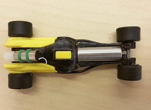 My project aimed to take a small toy car and hot rod it to move under it’s own power. The first iteration attempted to use a 3d printed bracket that would hold the motor and use a belt drive to spin the rear axle. Unfortunately, the belt would either slip due to torque or derail and render the toy immobile. The second iteration utilizes a gear worm driven method. The idea was to have a toggle switch with a flat 4v battery to power the toy. In the end this iteration did work, however the result was underwhelming due to lack of power. The third and final iteration utilized a 3d printed front extension “frame” that carried a compact 12v battery. The system is a plug and play, where you simply insert the battery and the toy begins to move. Lego wheels are used to enhance the traction of the toy. Small set screws drilled into the wheels allowed them to be removable from the axle. The entire assembly can be taken apart and put back into the egg.
